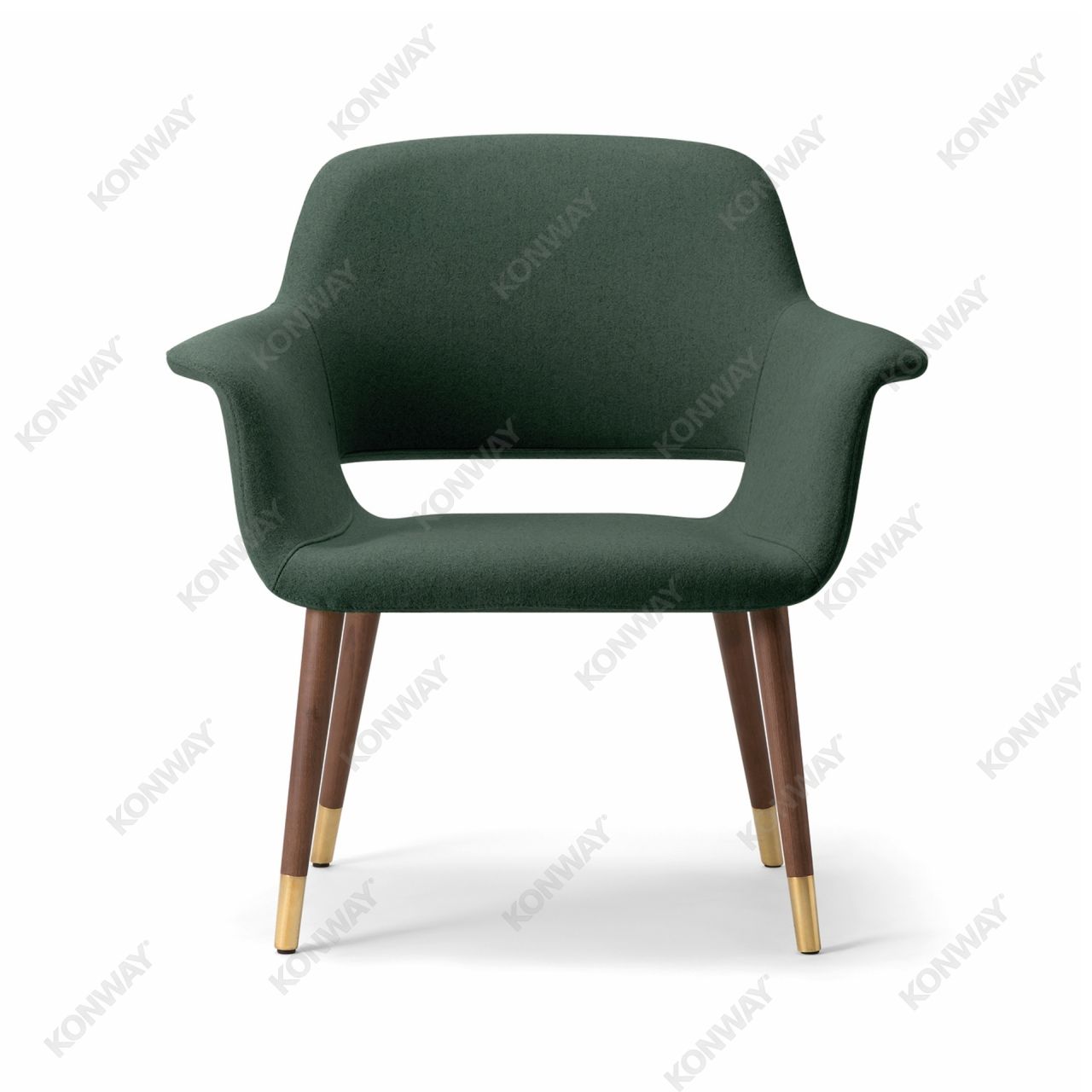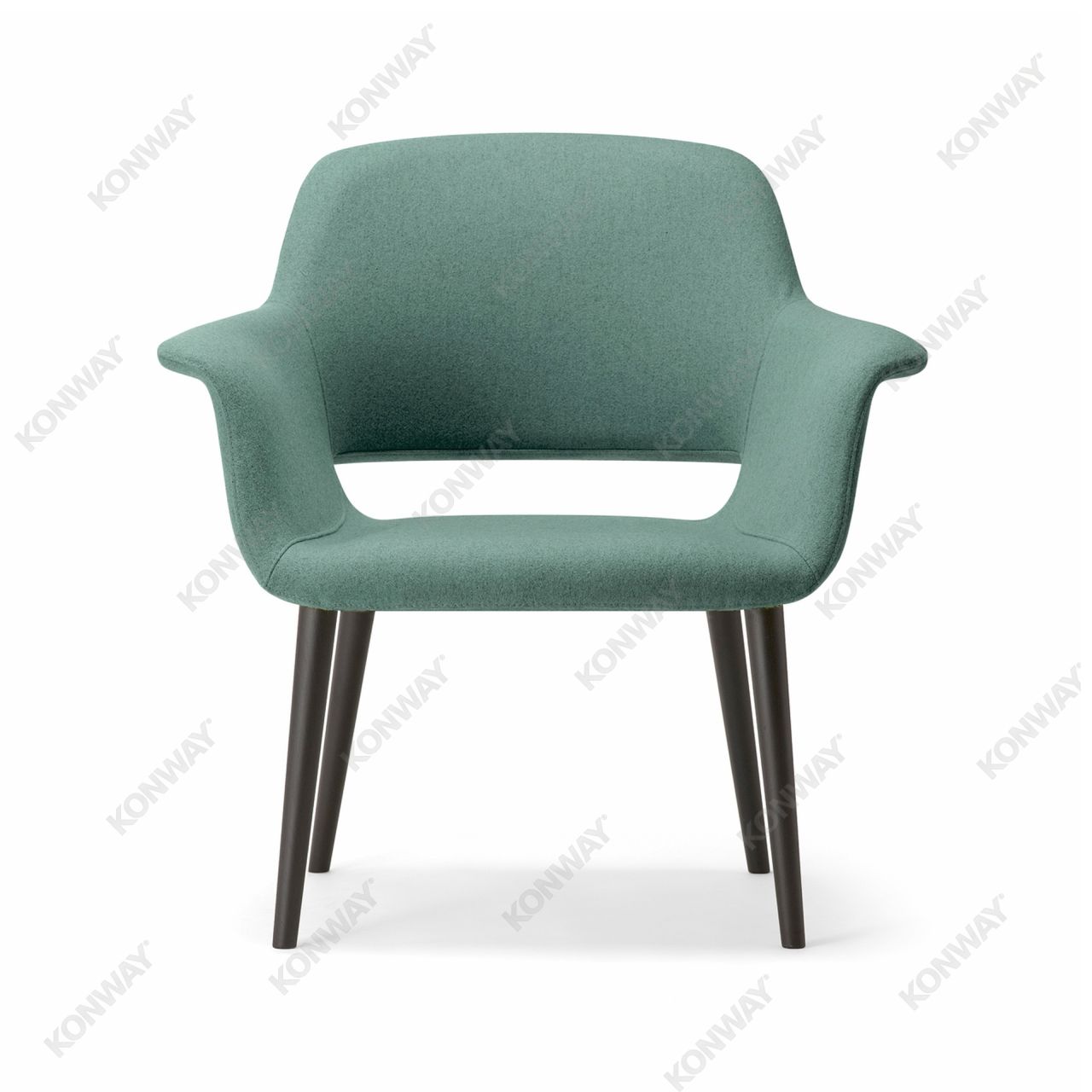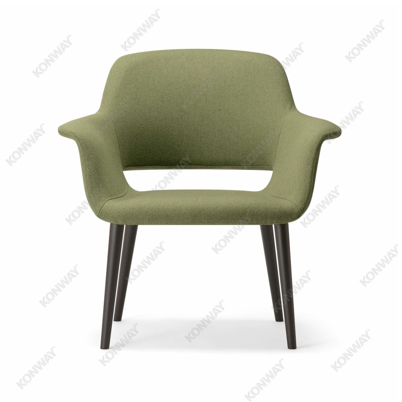 Moderner Lounge-Sessel mit Komfort-Armlehne, mit einem Stahlrahmen als Basis, massive Eschenholzbeine mit innenliegendem Stahlrohr, gebeizt und lackiert nach Hauskollektion.