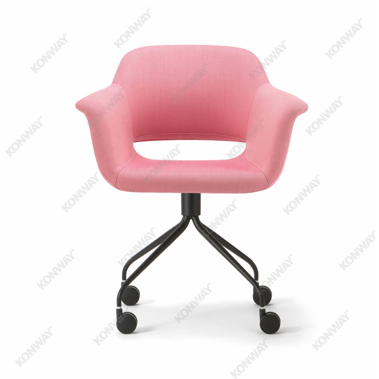 Moderner Sessel mit Komfort-Armlehne, mit einem Stahlrahmen als Basis, mit 4-Bein-Spinnengestell auf Rollen, verchromt oder pulverbeschichtet nach Hauskollektion.