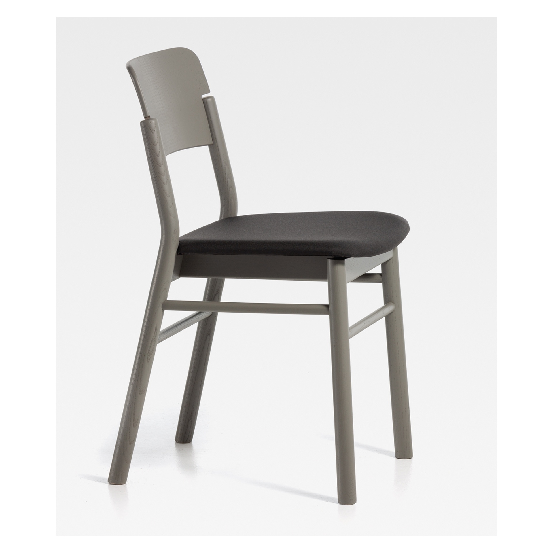 Moderner Stuhl aus massiver Esche, ungepolstert oder gepolstert, Sitzplatte mit Wabenkern mit Furnier belegt, lackiert nach Hauskollektion.