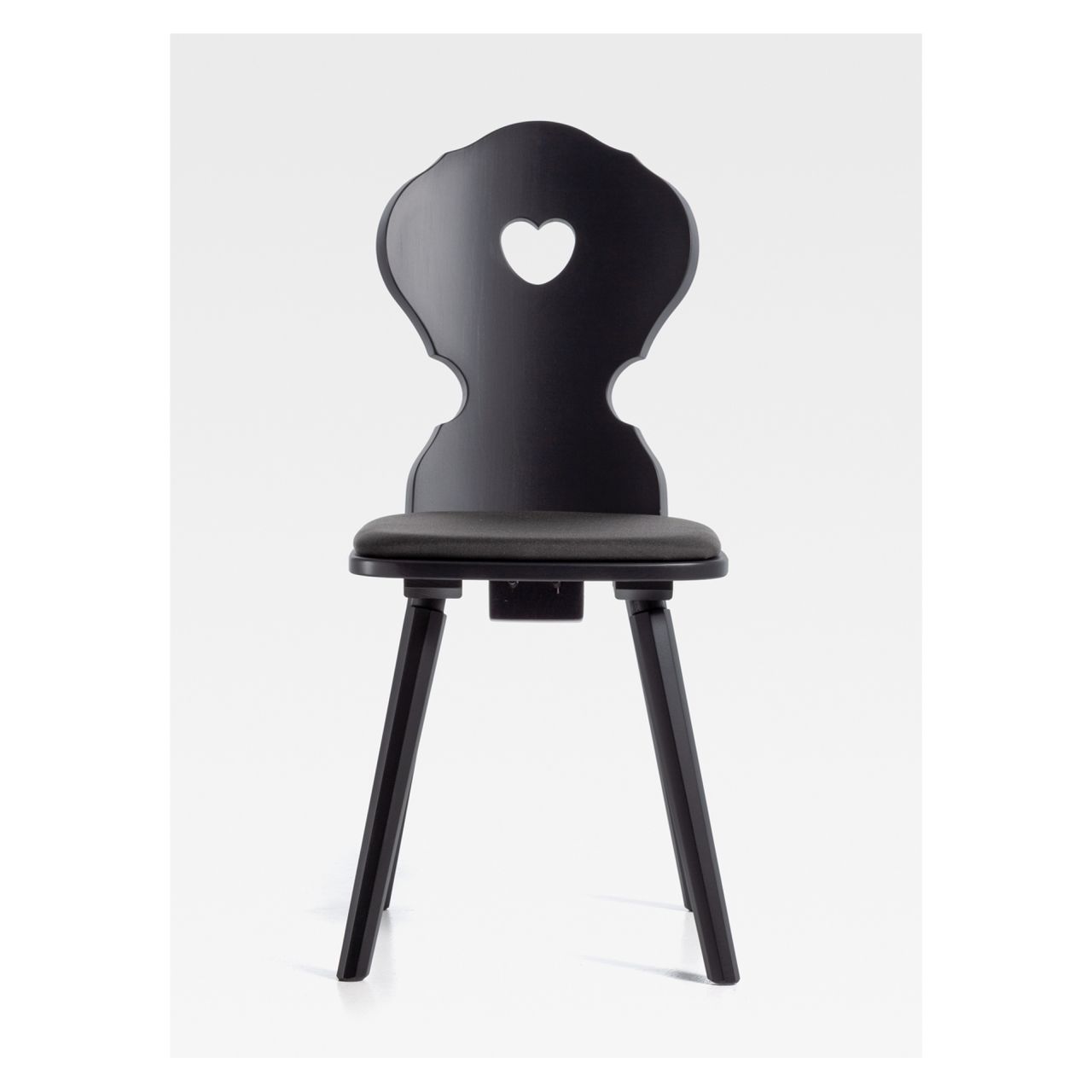 traditionell gefertigte Rückenlehne, gebeizt und lackiert nach Hauskollektion. Inkl. Bodengleiter aus PVC / Filz.