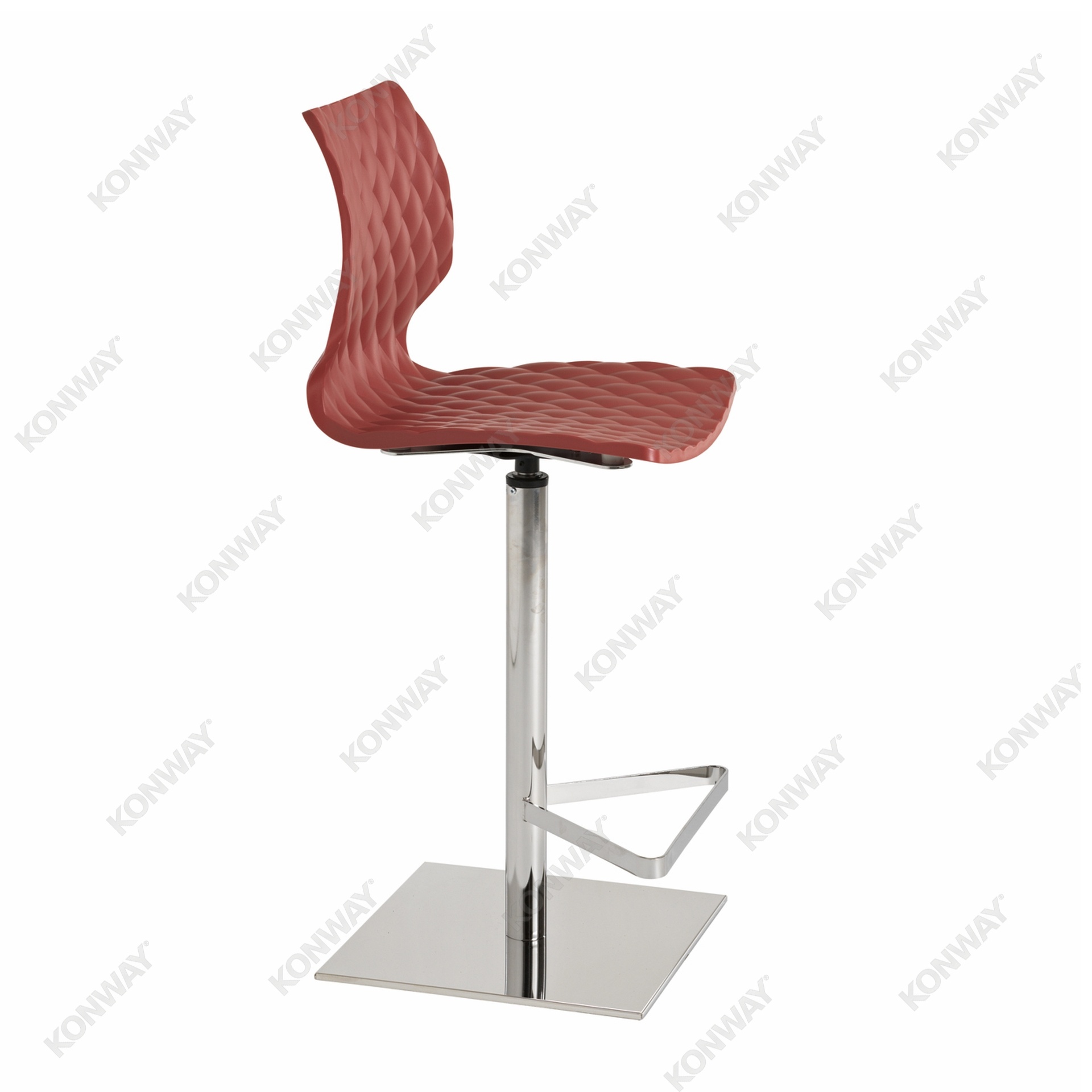 Polypropylen Schalenbarhocker auf rundem Säulengestell mit Drehmechanismus 360°, mit Trittleiste dreieckig.