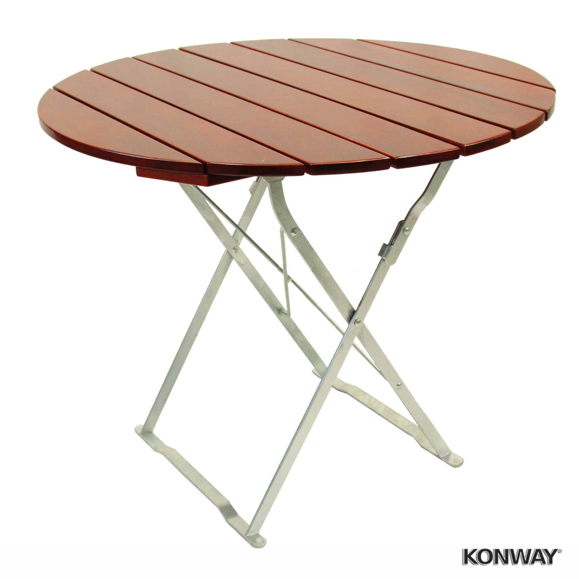 Hochwertiger klappbarer Biergarten-Tisch mit formschönen Tischleisten. Das sorgfältig abgetrocknete Holz (Güteklasse A) ist europäisches Hartholz Esche und ist 3-Fach mit lebensmittelechtem Lack in drei möglichen Farbtönen (Kirsche, Wallnuss, Kastanie) lackiert. Alle Spax-Schrauben sind verzinkt.